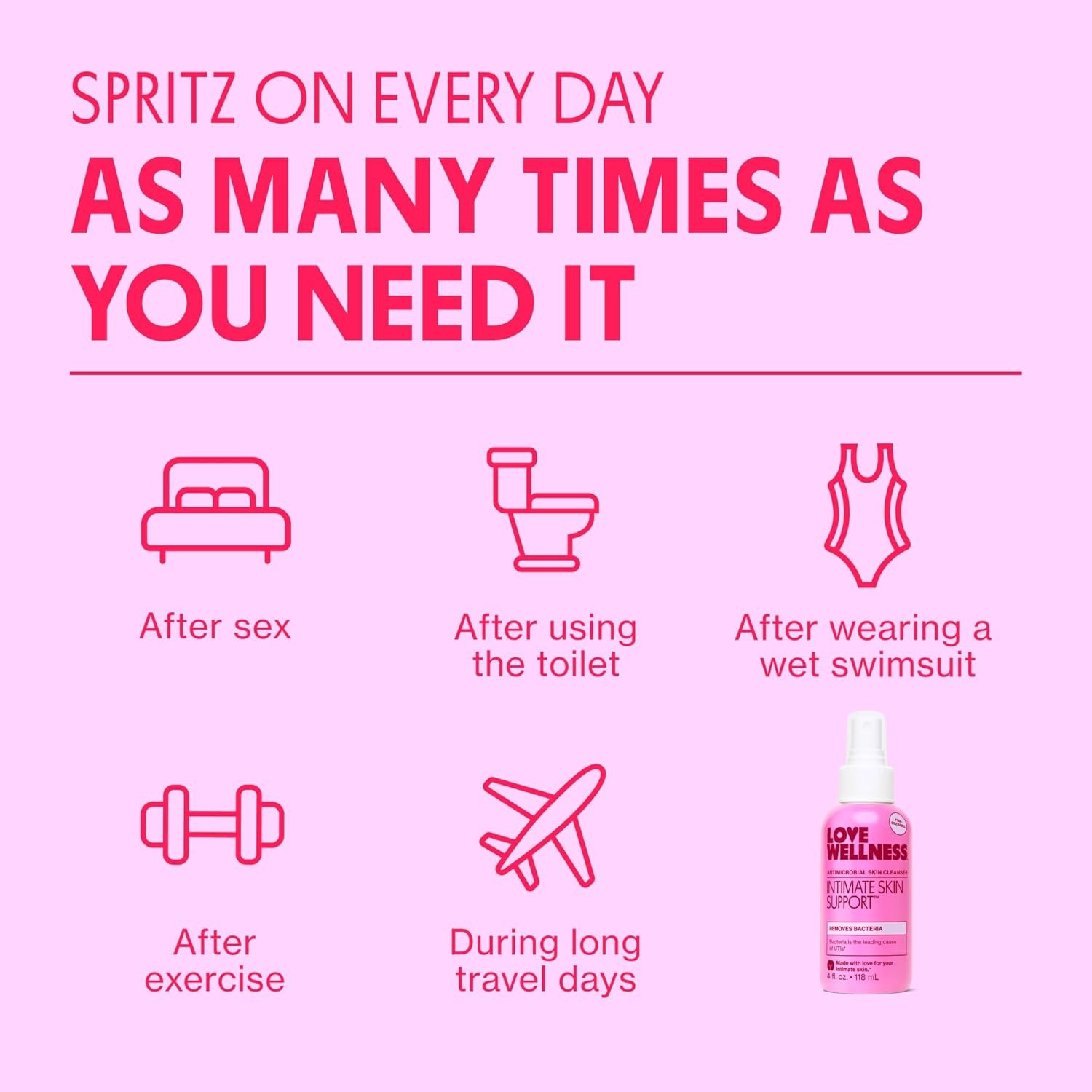 Love Wellness Intimate Skin Support I UTI Prevention and Cleanser Spray I Odor Removal & Itch Relief, Hypochlorous Acid Formula, pH-Balanced & Fragrance-Free, 4 fl oz