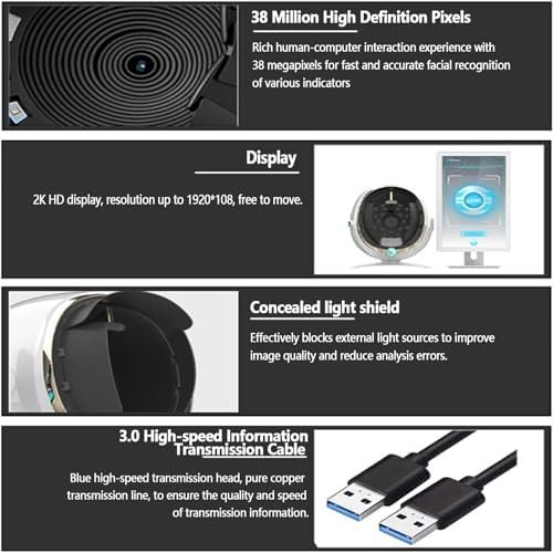 【Technical Advantages】Through 36 million high-resolution pixels to detect facial skin conditions, using 8-spectrum imaging technology, AI facial recognition technology, deep learning technology, 3D simulation technology, cloud computing cloud storage, combined with large database annotation, accurately identify and analyze various skin problems.