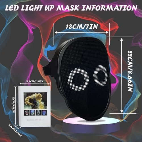 Shining Mask Has 45 Dynamic Display Modes And 70 Static Display Images,Led Mask Can Be Set To Single Color,Flash,Gradient,Smooth And Multi-Color.After Connecting To The Led Mask Using Bluetooth-compatible,It Can Be Programmed Through The SHINING MASK APP.