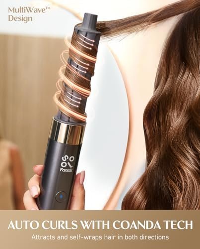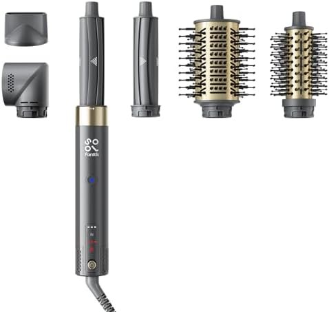 FanttikSolo 6 in 1 AirWave Air Auto Wrap Styler, Ionic Hair Dryer Brush for Curling, Straightening, Volumizing and Drying, Hair Multi-Stylers with Storage Bag, Curlers, Smooth Brush, Concentrator