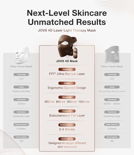 Unveil Your Glow with JOVS: Smooth away wrinkles and banish dark circles with the JOVS 4D Laser Light Therapy Mask. After real-person testing, it have visible result within 4 Weeks. Our brand proposition is to offer more professional, yet simplified solutions that seamlessly integrate into daily life. Infinite Innovation for a Timeless Glowing!