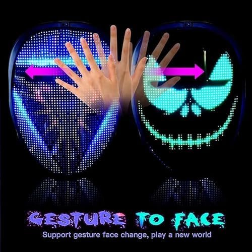 Led Mask with Gesture Sensing,Unisex LED Lighted Cool Face Transforming Mask for Costume Cosplay Party Masquerade