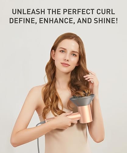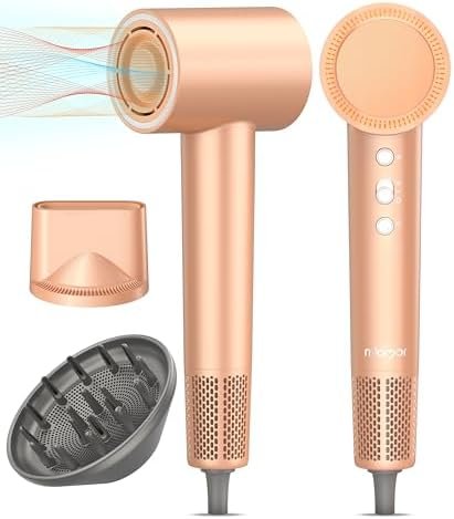 Miamor Professional Ionic Hair Dryer Powerful 1200W Fast Drying Low Noise Blow Dryer Light and Easy for Daily use with Magnetic Suction Nozzle (Peach Fuzz with Diffuser)