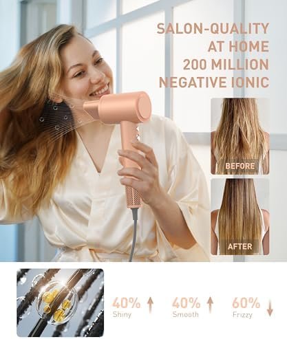 Advanced Ionic Technology for Healthy Hair: Our hair dryer emits 200 million negative ions, helping to reduce frizz and static for smoother, shinier hair. The included magnetic nozzle ensures precise airflow, making styling easier and more effective.