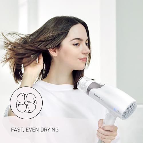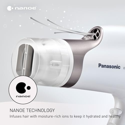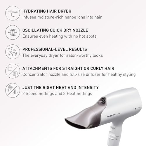 Panasonic Nanoe Salon Hair Dryer with Oscillating QuickDry Nozzle, Diffuser and Concentrator Attachments, 3 Speed Heat Settings for Easy Styling and Healthy Hair – EH-NA67-W (White)