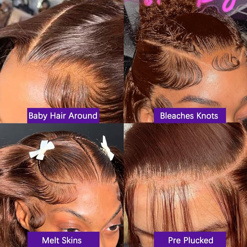 【Brown Lace Front Wigs Human Hair Advantages】 Natural Hairline With Baby Hair Around, Straight Lace Front Human Hair Wig Full And Thick, True To Length And Weight, Swiss Lace Suitable For Most Skins. Can Be Dyed, Bleached, Premed, Curly And Restyled. Suitable For Party, Birthday, Travel, Celebration, Wedding, Graduation And Daily Life.
