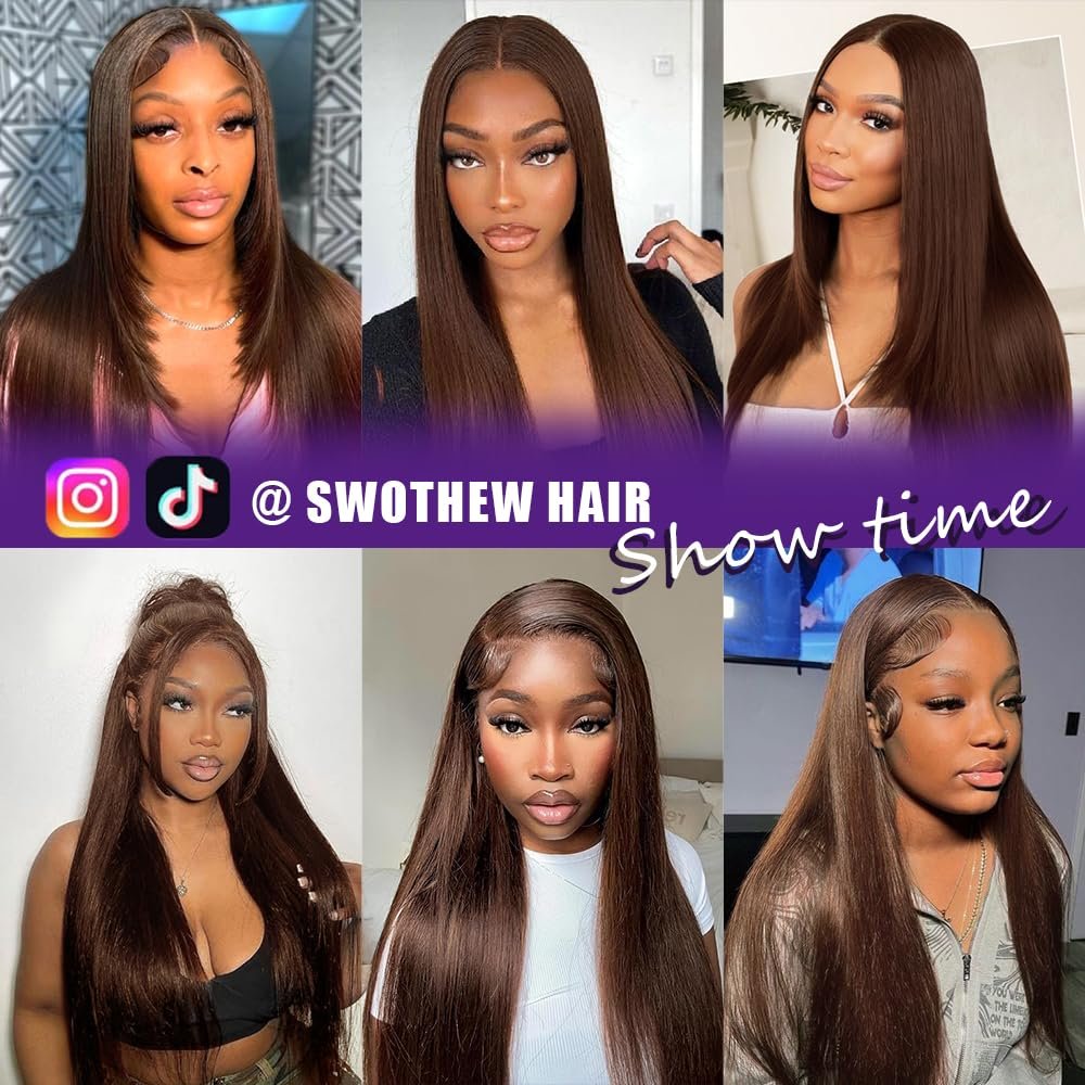 【13×6 Chocolate Brown Lace Front Wig】Chocolate Brown Straight Lace Frontal Wigs Human Hair Wigs For Women, We Will Help You, If You Have Any Questions About Our Straight Lace Front Wigs Human Hair, We Will Solve It For You In Time.
