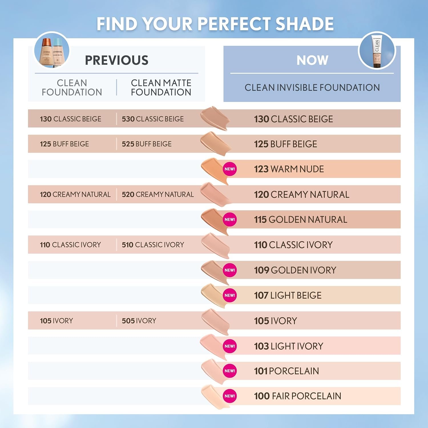New & improved Clean Invisible Foundation is now clean & fragrance free. Lightweight, breathable formula looks & feels like your skin, but better. Now in an easy to use tube.