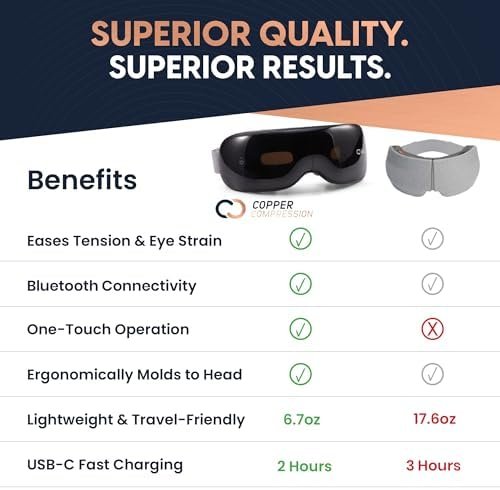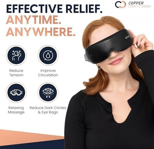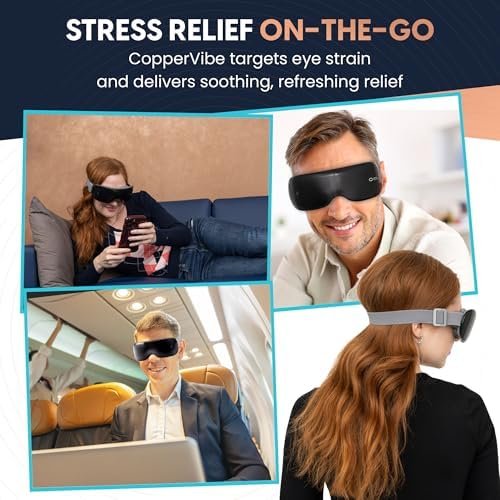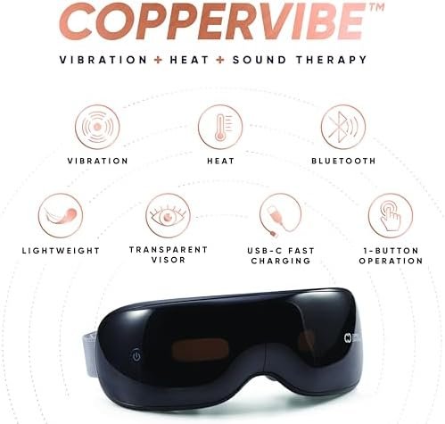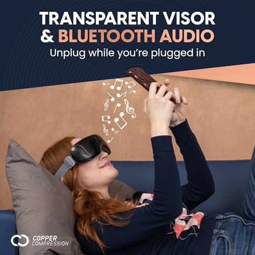 Copper Compression CopperVibe Eye Massager – Heat, Bluetooth, Transparent Visor, Timer & Adjustable Strap. Relieves Strain, Migraines, Puffiness, Dark Circles, Headaches. Self Care Gift for Men, Women