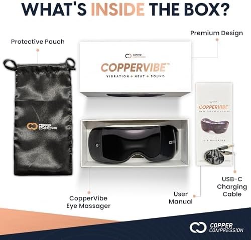 Be the first to review “Copper Compression CopperVibe Eye Massager – Heat, Bluetooth, Transparent Visor, Timer & Adjustable Strap. Relieves Strain, Migraines, Puffiness, Dark Circles, Headaches. Self Care Gift for Men, Women” Cancel reply